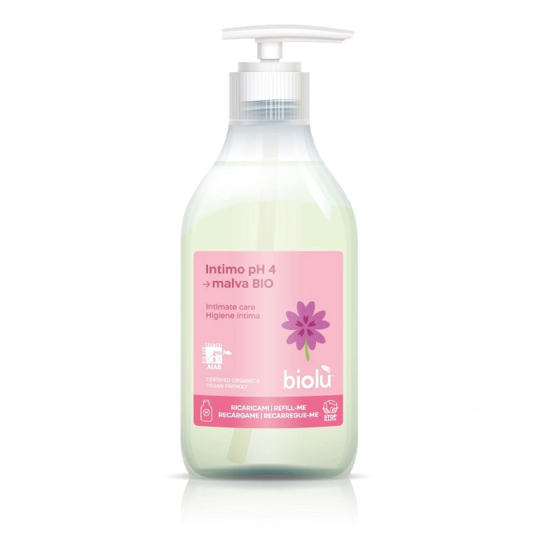 Sapone intimo antibatterico per l'igiene di tutta la famiglia, con malva biologica ad azione lenitiva ed emolliente.