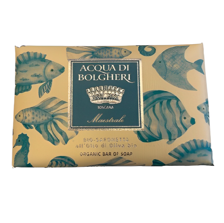 Saponetta tradizionale dal profumo intenso. La sua essenza ha note marine, come sfumature di salsedine nell’aria di Bolgheri già profumata di agrumi e legni rari.